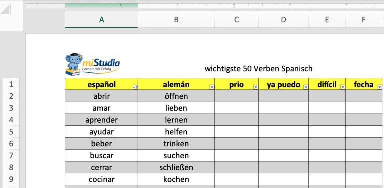 wichtigste 50 Verben Spanisch